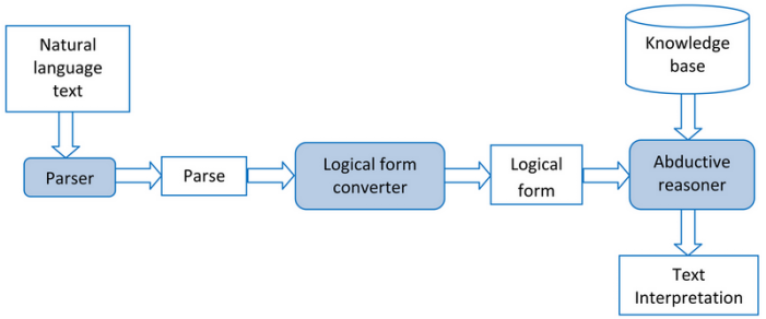 Inoue, N., E. Ovchinnikova, K. Inui and J. R. Hobbs (2014). Weighted Abduction for Discourse Processing Based on Integer Linear Programming. In Sukthankar, G., Goldman, R. P., Geib, S., Pynadath, D. V., Hung, H. B. (eds.) : Plan, Activity, and Intent Recognition, pp. 33-55. [Link]
